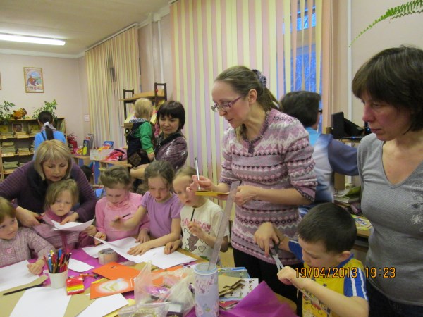 Мастер-класс по изготовлению открыток привлек внимание и самых маленьких, и взрослых. Как из подручных материалов – бусинок, открыток, ленточек – изготовить красивые открытки своими руками, рассказала Ольга Вишератина. Уроки экспресс-рисования провела для участников «Библиосумерек» Евгения Гилева. Завершилась программа для детей запуском воздушного книжного шара