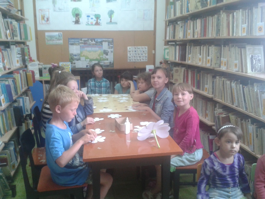 В библиотеке Маджы на информационной беседе «История о непростой жизни и большой любви Петра и Февронии» участники мероприятия просмотрели презентацию о покровителях праздника. Дети узнали историю праздника, познакомились с его символом – ромашкой, которая с древних времён была знаком любви. Ребята рассказывали о своей семье, о том, как они проводят время с родителями. Затем настал черед мастер-класса по изготовлению ромашек. А самые быстрые успели еще и порисовать, и в шашки сыграть.
