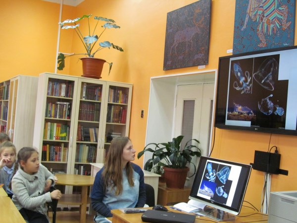 В рамках фестиваля проектов по продвижению чтения «Читаем вместе! Литературная Норвегия», прошедшего 24,25 мая в Корткеросе, в Центральной детской библиотеке прошел мастер-класс Юные читатели творчески знакомились с книгой Улафа Кушерона «Приключения маленькой трески». Мастер-класс провела Наталья Левушкина – координатор творческих проектов издательства. Ребята познакомились с обитателями океана, узнали, какие опасности подстерегали маленькую треску и как ей удалось эти опасности преодолеть. А затем все вместе из яркой бумаги сделали маленьких рыбок. Получилось настоящее подводное царство
