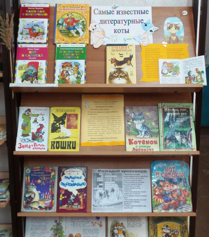В Сторожевской библиотеке проходит акция «Мой ласковый и нежный зверь», посвященная Международному дню кошек. Сколько на свете пород котов и кошек? А зачем котам усы? Почему кошки видят в темноте? Почему когти им не мешают ходить? Всё это и ещё множество кошачьих секретов узнали участники акции. Также все желающие могли поучаствовать в кото-викторине «Кто сказал Мяу?» и проверить свои знания о наших любимых пушистых друзьях. А найти ответ на вопрос помогла выставка «Самые известные литературные коты», где главными героями стали наши любимые пушистые питомцы. Дети с удовольствием делились впечатлениями о книгах, которые они уже читали и рисовали своих любимцев.