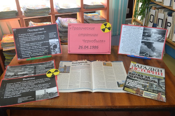 В Приозёрной библиотеке прошел информационный урок-реквием «Зона отчуждения». Мероприятие сопровождалось видео-беседой «Чернобыльская трагедия». В библиотеке оформлена информационная выставка «Трагические страницы Чернобыля».