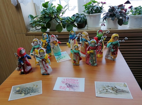 Кукла «Вербница» – символ весеннего праздника и покровительница женского здоровья. В преддверии Вербного воскресенья в Нившерской библиотеке прошёл мастер-класс по изготовлению «Вербницы». Подготовила и провела занятие А.Е.Габова. Для изготовления куклы понадобились веточки вербы, кусочки ткани и нитки. Во время работы участники узнали, что Вербница символизирует женщину, идущую в храм освящать веточки вербы к праздничному дню. А ещё она защищает домашний очаг и семью. У каждой участницы кукла получилась особенная и неповторимая.