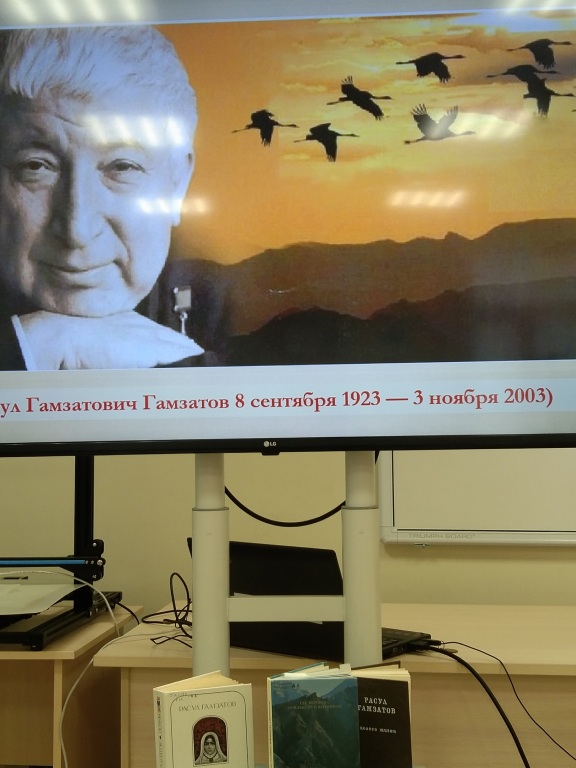 В центральной библиотеке имениМ.Н. Лебедева для восьмиклассников прошел литературный час "Поэзия души Расула Гамзатова". Участники слушали стихи поэта, познакомились с его биографией и творчеством, посмотрели видеоприветствие с родины Р.Гамзатова из музея д. цада (Республика Дагестан)