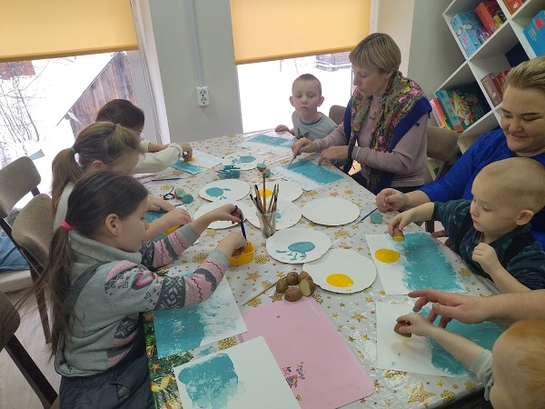 В Нёбдинской библиотеке прошло первое в этом году занятие по программе «Почитаем-поиграем».Темой занятия стала русская народная сказка «Колобок», после прочтения которой состоялась беседа о прочитанном. Дети вспоминали героев сказки, провели пальчиковую гимнастику, а завершилось мероприятие творчеством. Каждый нарисовал своего колобка нетрадиционным способом – с помощью сырой картошки! У каждого юного художника герой получился своеобразным и интересным.