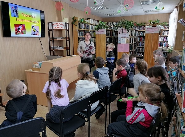Юные книголюбы участвовали в интерактивной игре «Знаешь ли ты птиц?». Дети активно отвечали на вопросы викторины «Тайны пернатых», угадывали голоса птиц, вспоминали книги, в которых говорится о птицах и переводили названия птиц на коми язык. В библиотеке оформлена книжная выставка «Птицы наши друзья».