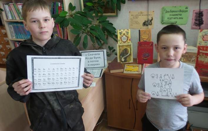 В Нившерской библиотеке прошла познавательная игра «Откуда азбука пришла». Дети перенеслись в далёкое прошлое, посмотрели видеоролик о развитии славянской письменности с древних времен до наших дней и о главнейшей роли просветителей Кирилла и Мефодия в создании славянской азбуки. Продолжили мероприятие играми «Соберите пословицу», «Составьте слово».