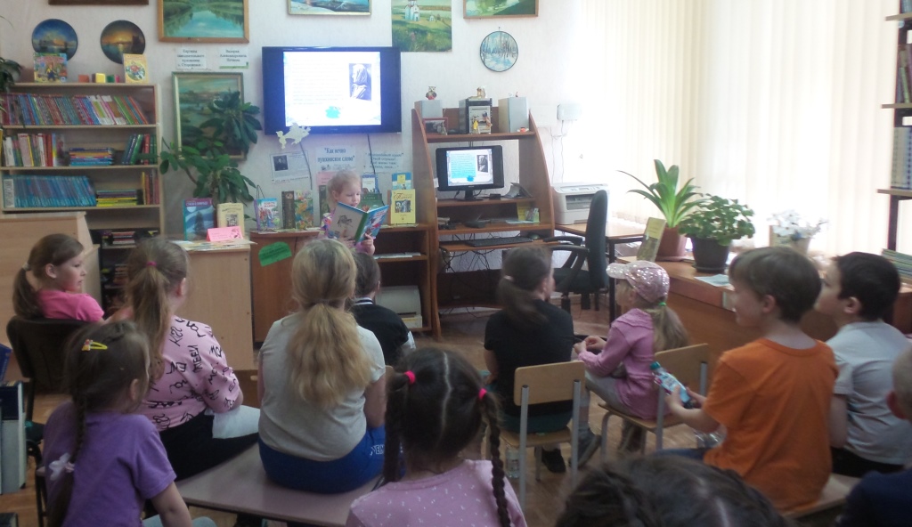 Читателям Сторожевской библиотеки предлагалось принять участие в поэтической акции «Минута для чтения, или все читаем Пушкина». Участники читали наизусть или из сборников любое стихотворение поэта, а также проверяли свои знания, отвечая на вопросы мини-викторины «Продолжи поэтическую строчку». Встреча с юными гостями началась с громкого совместного чтения отрывка из поэмы «Руслан и Людмила» - «У Лукоморья дуб зеленый…». Затем ребята совершили виртуальное путешествие по сказкам и ответили на вопросы электронной литературной игры «Что за прелесть эти сказки!». Все ребята очень активно участвовали в игре и показали хорошие знания произведений Пушкина. К мероприятию в библиотеке оформлена книжная выставка «Как вечно пушкинское слово».