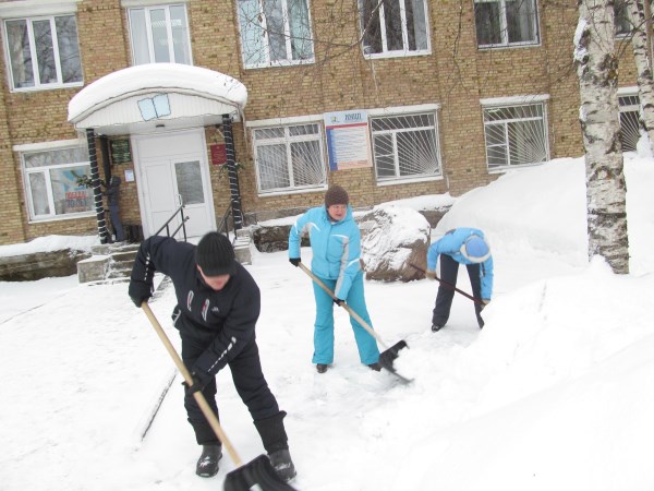 Большелугская библиотека приняла участие в уборке снега на территории своего учреждения.