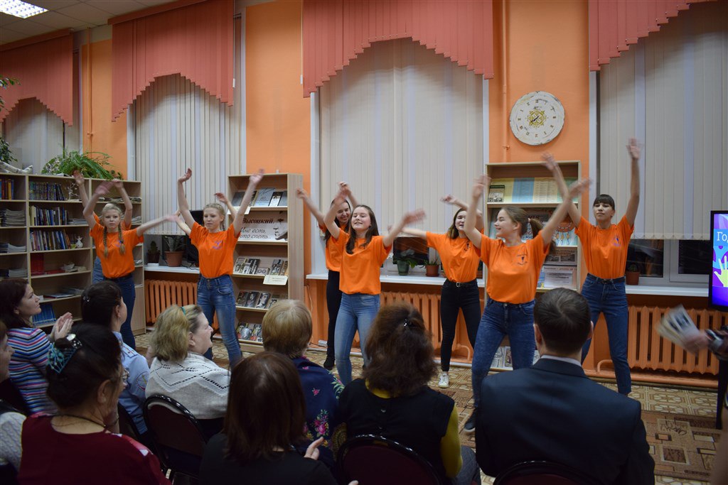 Затем наступил черед представить волонтерский отряд при библиотеке «Данко», в связи с объявленным в 2018 году в России годом волонтера. Куратор отряда С.В. Ивашева поведала собравшимся о деятельности волонтерского движения и планах на год, после чего волонтеры станцевали зажигательный танец. Вечер закончился традиционным чаепитием.