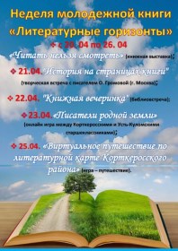 Насыщеннно и интересно прошла Неделя молодежной книги в библиотеках Корткеросской ЦБС. Несмотря на обилие и разнообразие тематики, основной упор был сделан на познавательную информацию о родной республике.