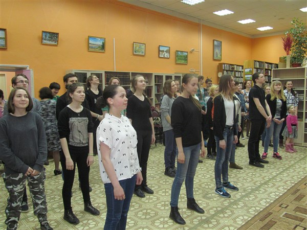 Среди молодежи очень популярны фильмы про танцы. Мастер-класс по хип-хопу провел студент 4 курса хореографического отделения Коми республиканского колледжа культуры им.В.Т.Чисталёва - Чугаев Андрей. Ребята с удовольствием окунулись в зажигательный ритм современного танца. На несколько минут зал библиотеки превратился в настоящий танцпол.