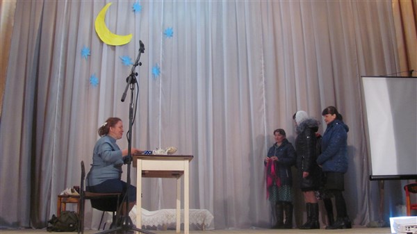 Розыгрыш «кинобилетов», которые гости получали при входе на «вечерний сеанс», выявил победителей с номерами 22, 4, 16. Они получили сладкие призы.