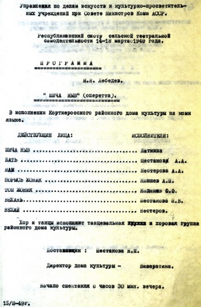 Оперетка «Мича ныв» в постановке Корткеросского народного театра, 1983 год. |