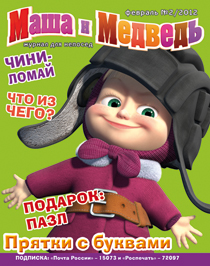 Маша и медведь «Маша и Медведь» - интерактивный журнал для активных детей 3 – 7 лет. Забавные приключения, в которые непоседливая Маша втягивает увальня Медведя, развеселят и детей, и родителей. Под яркой обложкой: захватывающие истории, комедийные ситуации, персонажи русских народных сказок, взаимоотношения героев, которые напоминают отношения ребенка и взрослого. В каждом номере Большая картонка-самоделка, коллекционная игра, веселые уроки, забавные комиксы, нескучные советы, конкурсы, песни, шутки и хорошее настроение вместе с добряком Медведем и неугомонной Машей! http://www.egmont.ru/journals/masha/ |